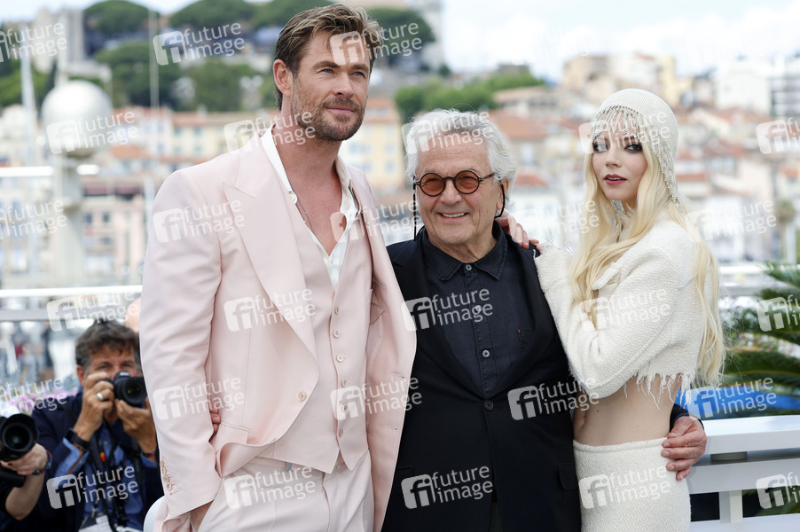 Chris Hemsworth, George Miller und Anya Taylor-Joy beim Photocall zum Kinofilm 'Furiosa: A Mad Max Saga' auf dem Festival de Cannes 2024 / 77. Internationale Filmfestspiele von Cannes am Palais des Festivals. Cannes, 16.05.2024
