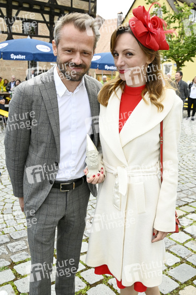 Sven Waasner und Viola Wedekind bei der 4. Sternstunden Benefiz Oldtimer Rallye 2022 für geflüchtete Kinder aus der Ukraine (Spendensumme über 12.000 Euro) am Start & Ziel auf dem Kornhausplatz. Spalt, 29.05.2022
