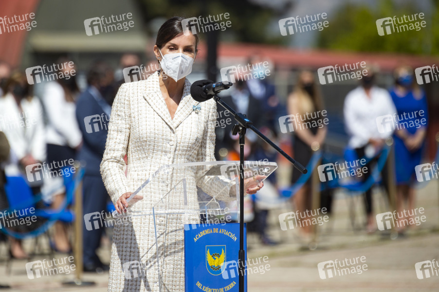 Königin Letizia von Spanien bei der Zeremonie der Übergabe der Nationalflagge an die ACAVIET (Luftfahrtakademie der Armee) in der Helipuerto Base Coronel Mate. Colmenar Viejo, 07.05.2021