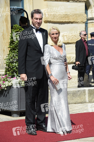 Markus Söder mit Ehefrau Karin Baumüller bei der Eröffnung der Richard-Wagner-Festspiele 2019 mit der Premiere 'Tannhäuser' im Bayreuther Festspielhaus. Bayreuth, 25.07.2019