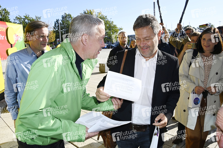 Robert Habeck und Katrin Göring-Eckardt bei der Ankunft zum Gespräch zwischen SPD, Bündnis 90/Die Grünen und FDP im CityCube Berlin. Berlin, 07.10.2021