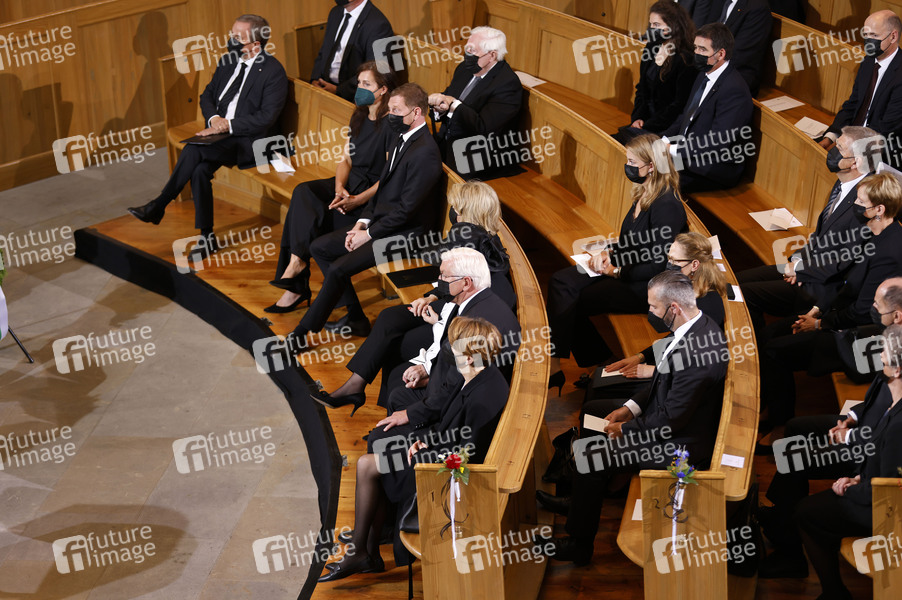 Armin Laschet, Annett Hofmann, Michael Kretschmer, Frank-Walter Steinmeier und Elke Büdenbender beim Trauerstaatsakt zu Ehren des verstorbenen früheren Ministerpräsidenten Kurt Biedenkopf in der Frauenkirche Dresden. Dresden, 03.09.2021