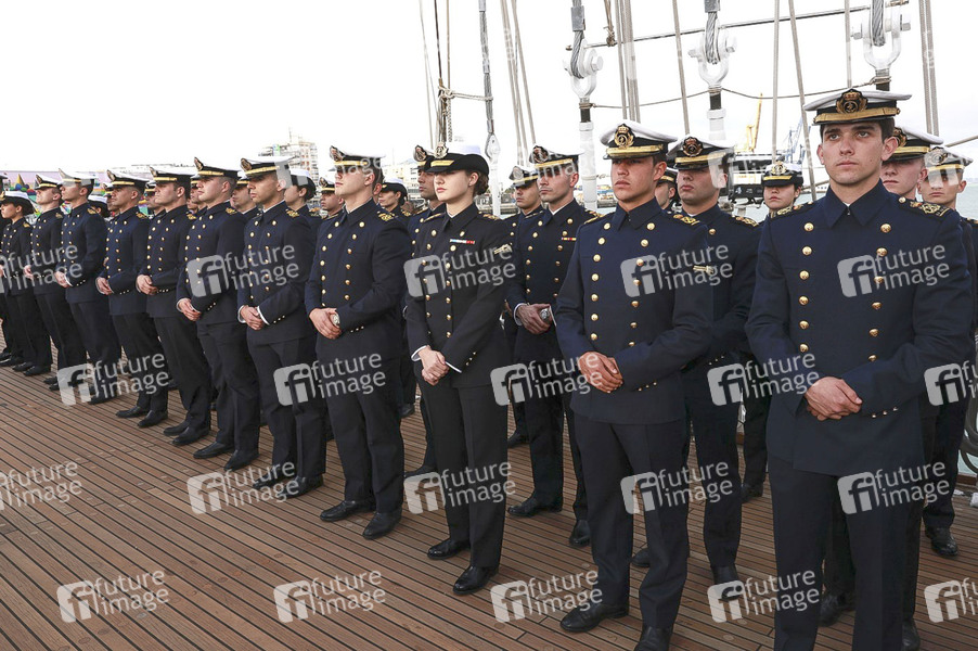 Kronprinzessin Leonor von Spanien geht am 8. Januar 2025 für fünf Monate als Fähnrich auf das Marineschulschiff Juan Sebastián ElCano, um ihre militärische Ausbildung im Hafen von Cádiz im Süden Spaniens fortzusetzen. Cádiz, 08.01.2025