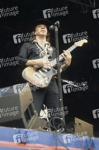 Stevie Ray Vaughan & Double Trouble live auf dem Reading Rock Festival 1983 an der Richfield Avenue. Reading, 27.08.1983