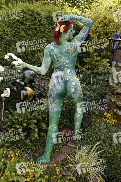 Bodypainting und Fotoshooting mit Model Nadine auf dem 'Tag des offenen Gartens' in Stadthagen-Niedernwöhren. Künstler: Jörg Düsterwald