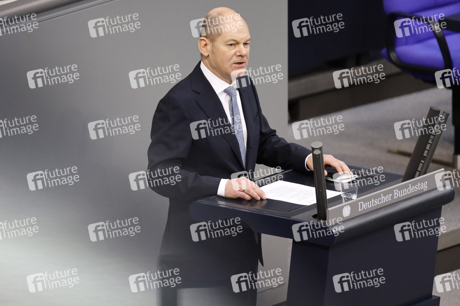 Olaf Scholz in der 210. Sitzung des Deutschen Bundestages im Reichstagsgebäude. Berlin, 12.02.2021