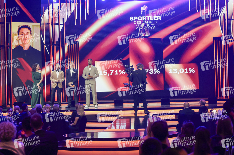 Lena Kesting, Sven Voss, Florian Wellbrock und Leo Neugebauer bei der 79. Sportler des Jahres Gala 2025 im Kurhaus. Baden-Baden, 21.12.2025