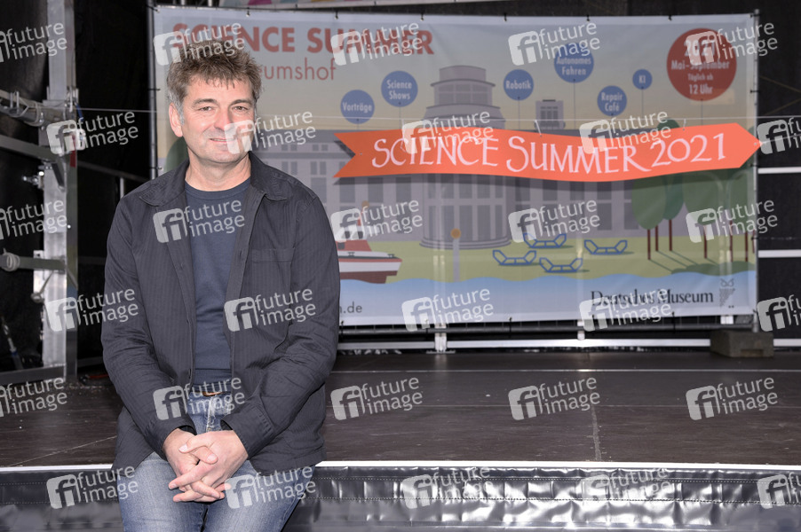 Till Hofmann bei der Pressekonferenz zum Open-Air-Sommer 2021 mit dem Eulenspiegel Flying Circus im Innenhof des Deutschen Museums. München, 17.05.2021
