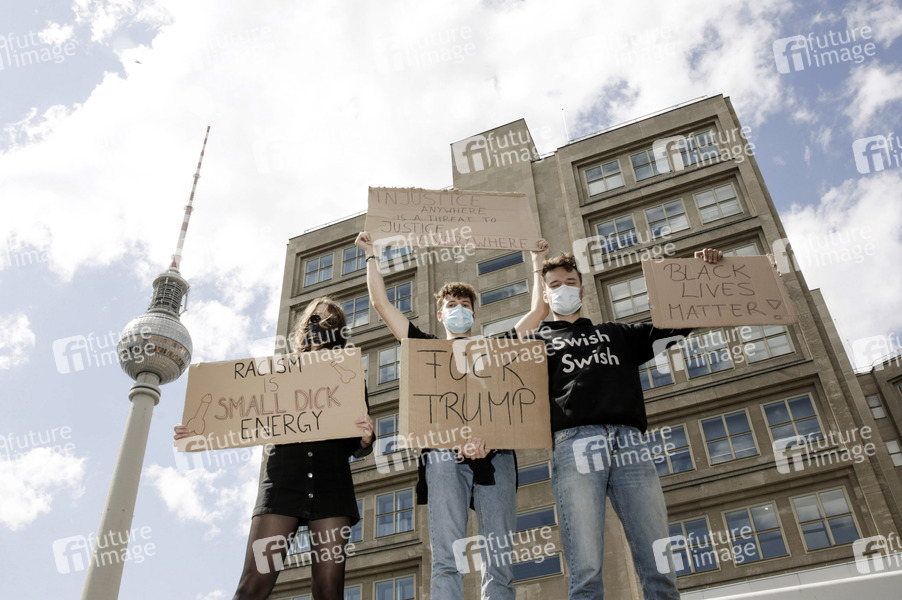 Demonstranten bei der 'Silent Demo' gegen Rassismus am Alexanderplatz. Berlin, 06.06.2020