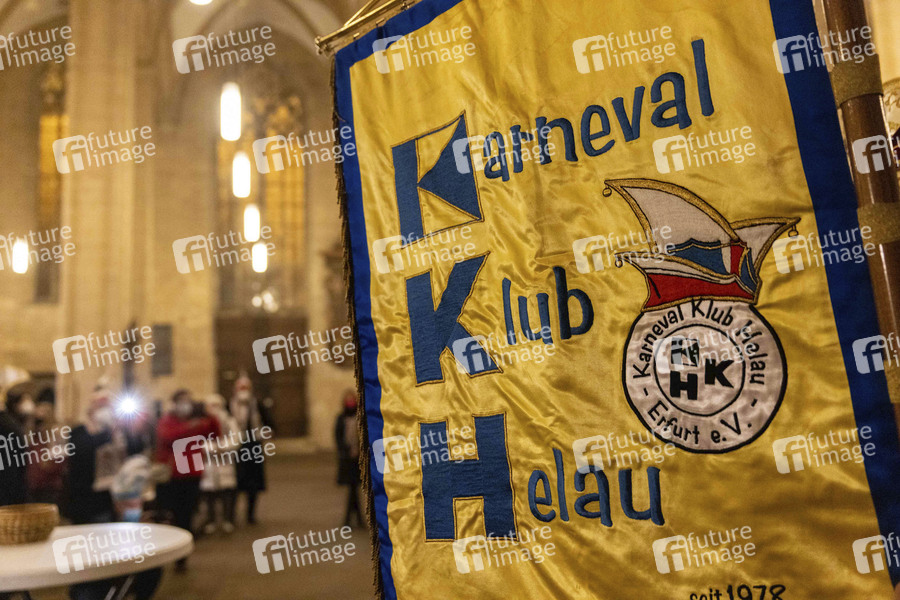 Der karnevalistische Gottesdienst fand unter 3G-Bestimmungen in der Severikirche auf dem Erfurter Domberg statt. Pfarrer Michael Neudert, gab den Karnevalisten, einschließlich den Prinzenpaaren Christian II. und Verena II. und den Kindern Luca I. und Noelanie I. den Segen für die anstehende Kampagne. Erfurt, 16.01.2022