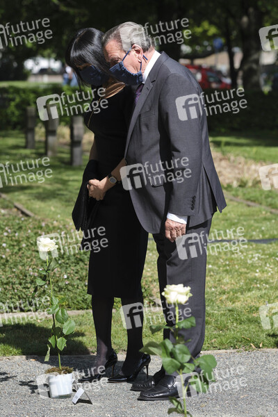 Gerhard Schröder mit Ehefrau Schröder-Kim So-yeon bei der Gedenkfeier zum Tag der Befreiung - 75. Jahrestag der Kapitulation des Nationalsozialistischen Deutschlands auf dem Ehrenfriedhof am Maschsee-Nordufer. Hannover, 08.05.2020