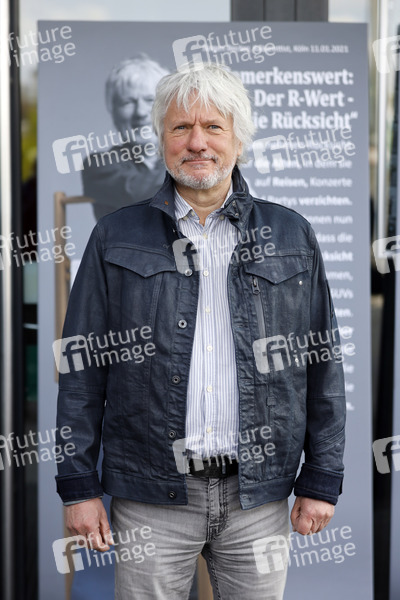 Jürgen Becker bei der Eröffnung der Ausstellung 'Der Stadt Bestes - Das Gute in der Krise' des Fotografen und Künstler Thomas Ahrendt. Die 70 grossformatigen Bilder sind ab sofort an den Fenstern der Lanxess Arena ebenerdig zu sehen. Köln, 03.05.2021