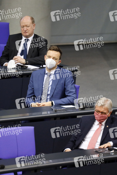 Reinhold Hilbers, Tobias Hans, Volker Bouffier bei der Rede von UN-Generalsekretär Guterres anlässlich 75 Jahre Vereinte Nationen im Plenum im Reichstagsgebäude. Berlin, 18.12.2020