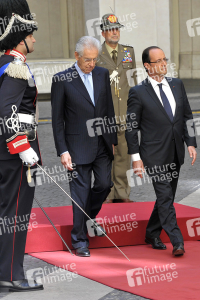 Ministerpräsident Mario Monti empfängt Präsident Francois Hollande im Palazzo Chigi, Rom