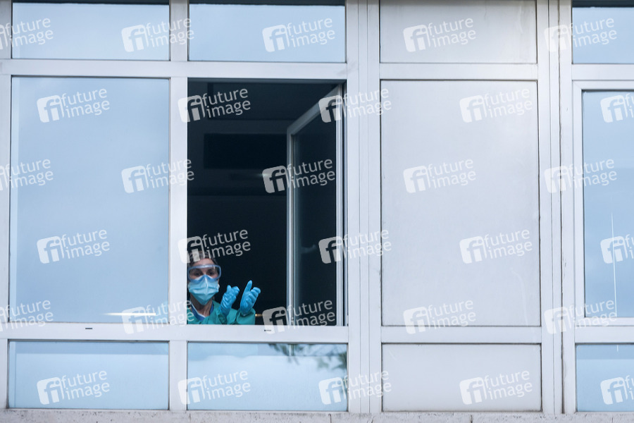 20 Uhr-Applaus am Hospital Universitario Fundacion Jimenez Diaz am 57. Tag seit Verhängung des Ausnahmezustands durch die spanische Regierung wegen der Coronakrise. Madrid, 10.05.2020