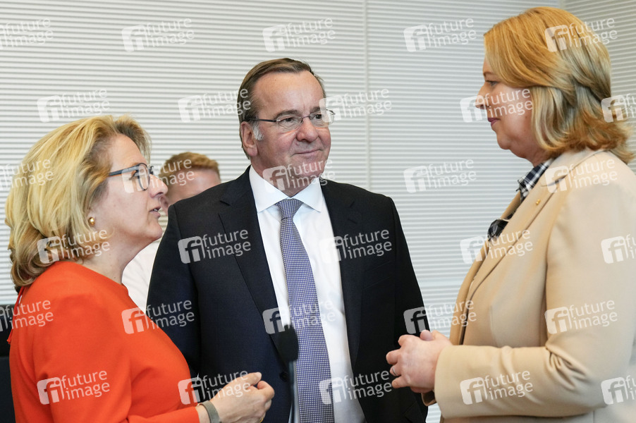 Svenja Schulze, Boris Pistorius und Bärbel Bas bei der Fraktionssitzung der SPD-Bundestagsfraktion im Reichstagsgebäude. Berlin, 14.05.2024