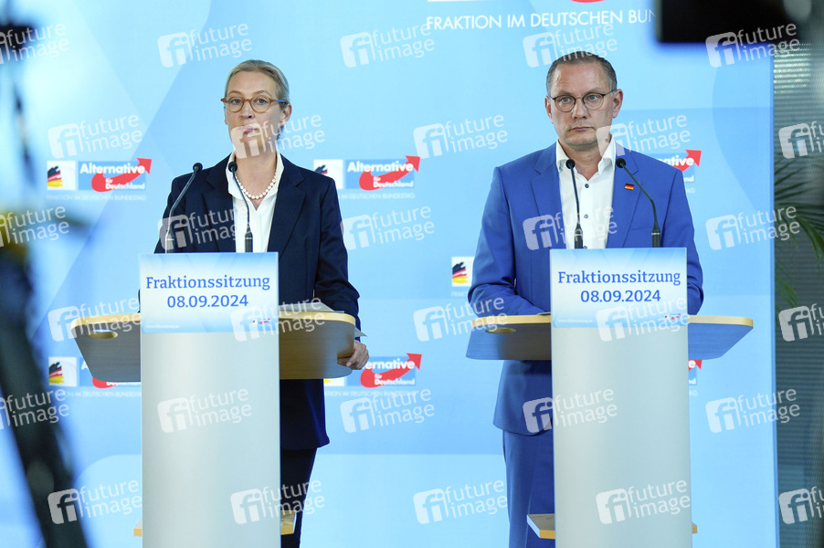 Alice Weidel und Tino Chrupalla bei der Fraktionssitzung der AfD-Bundestagsfraktion im Reichstagsgebäude. Berlin, 08.09.2024