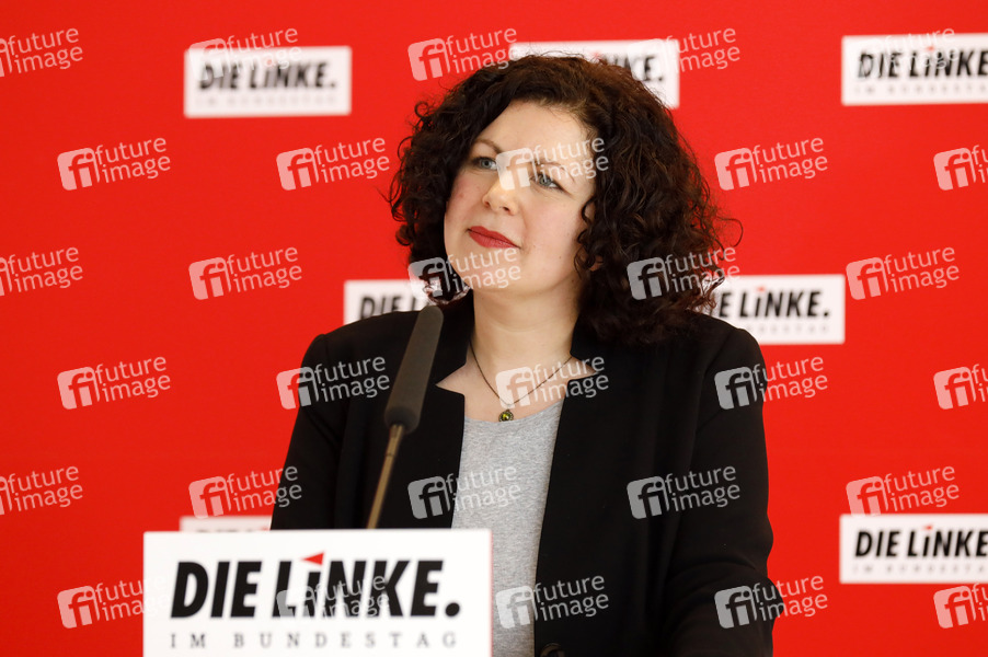 Politik, Pressekonferenz, PK, Reichstag, Sitzung, Regierung, Deutscher Bundestag, Demokratie, Abgeordnete, Parlament, Parlamentsgebäude, Bundesregierung, Volksvertreter, MdB, Mitglied des Bundestages, Politikerin, Fraktionsvorsitzende der Partei Die Linke