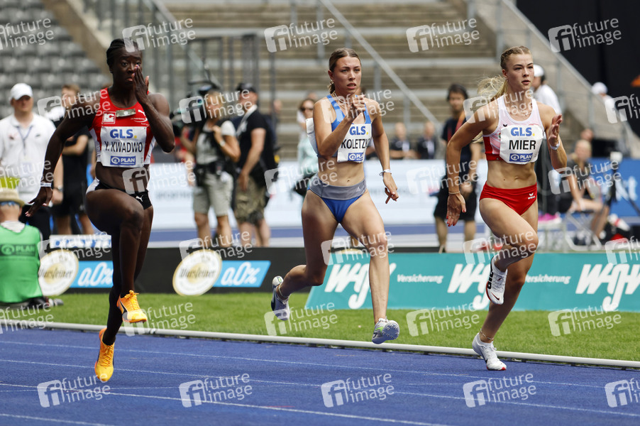 Yasmin Kwadwo beim Sportevent Die Finals - Berlin 2022 mit der Leichtathletik Disziplin 100 m Sprint Frauen im Olympiastadion. Berlin, 25.06.2022