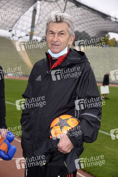 Klaus Augenthaler beim Fototermin zur sportichen '#WocheChallenge' im Olympiastation München. Unter dem Motto 'Wir können was bewegen!' ruft die Welthungerhilfe zu dieser Challenge auf und bittet um Spenden für eine Welt ohne Hunger. München, 13.10.2020