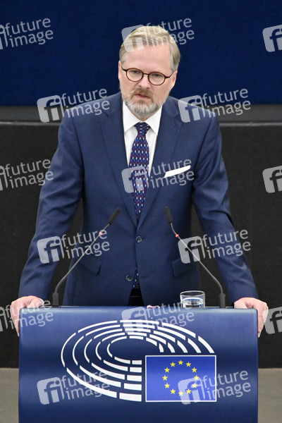 Petr Fiala präsentiert die Prioritäten der tschechischen EU-Ratspräsidentschaft im Plenarsaal des Europäischen Parlaments. Das Motto der tschechischen Ratspräsidentschaft lautet 'Europa als Aufgabe'. Das Motto unterstreicht die Notwendigkeit, die derzeitige EU-Politik im Lichte des russischen Angriffskrieges gegen die Ukraine neu zu bewerten. Straßburg, 06.07.2022