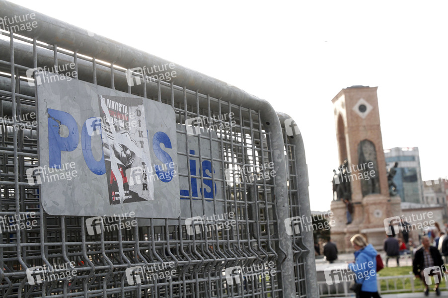 Die Stadt Istanbul hat angeblich wegen Bauarbeiten den Taksimplatz gesperrt, den traditionellen, aber lange Zeit verbotenen Aufmarschplatz der türkischen Gewerkschaften, der linken Parteien und Jugendbewegungen. Istanbul, 30.04.2014