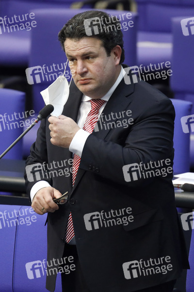 Hubertus Heil in der 210. Sitzung des Deutschen Bundestages im Reichstagsgebäude. Berlin, 12.02.2021