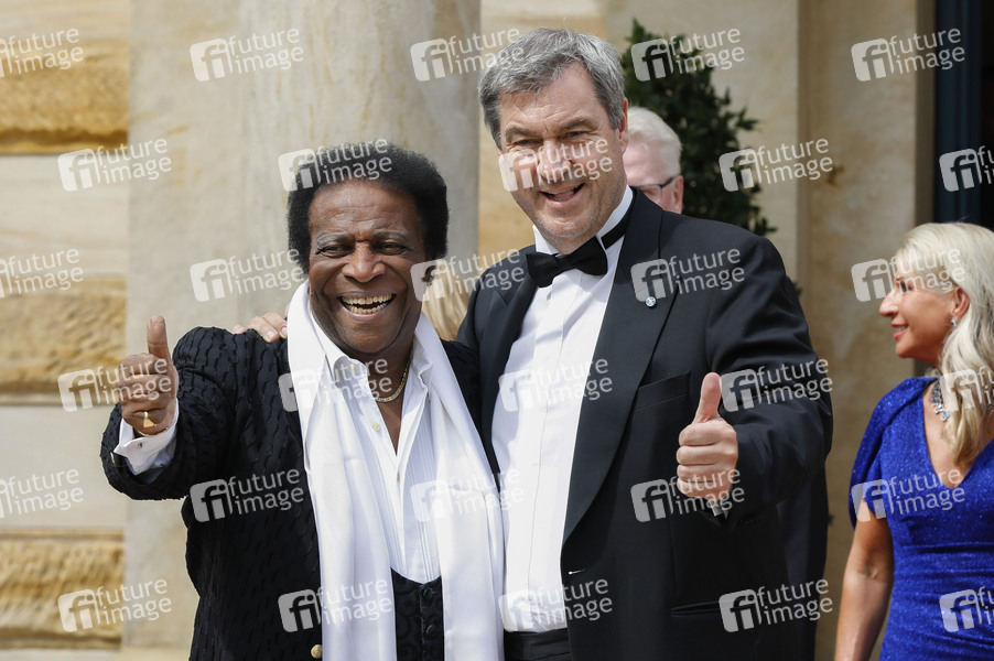 Roberto Blanco und Markus Söder bei der Eröffnung der 112. Richard-Wagner-Festspiele 2024 mit der Neuinszenierung von 'Tristan und Isolde' im Bayreuther Festspielhaus. Bayreuth, 25.07.2024