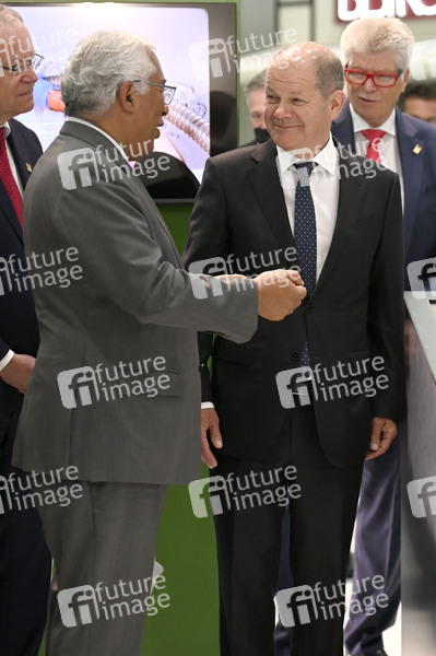 Antonio Costa und Olaf Scholz beim Eröffnungsrundgang am Stand von Adira auf der Hannover Messe 2022 auf dem Messegelände. Hannover, 30.05.2022