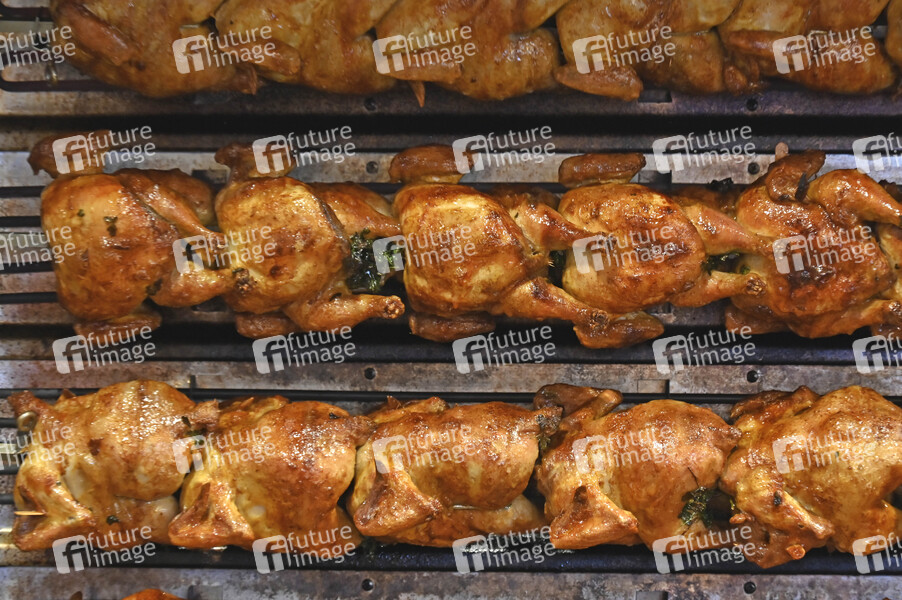 Grillhähnchen, Broiler, Feature, Unterhaltung, Entertainment, Kultur, Fest, Volksfest, 190. Wiesn, Wies'n, Fahrgeschäft, Vergnügungsattraktion, Schausteller, Festzelt, Festzelte, Vergnügen, Alkohol, Bier, Maß, Alkoholkonsum, Trachten, Brauerei, Brauereien, Gastronomie, Wiesnbesucher, Menschenmassen, Symbolfoto, Symbolbild, Themenbild, Themenfoto