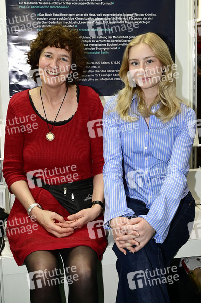 Kerstin Doerenbruch und Ivy Josefine Ullrich bei der Buch- und Film-Präsentation von 'Total Reset' am Messestand des Noel Verlag in Halle 2 auf der Leipziger Buchmesse 2025 auf dem Messegelände. Leipzig, 29.03.2025