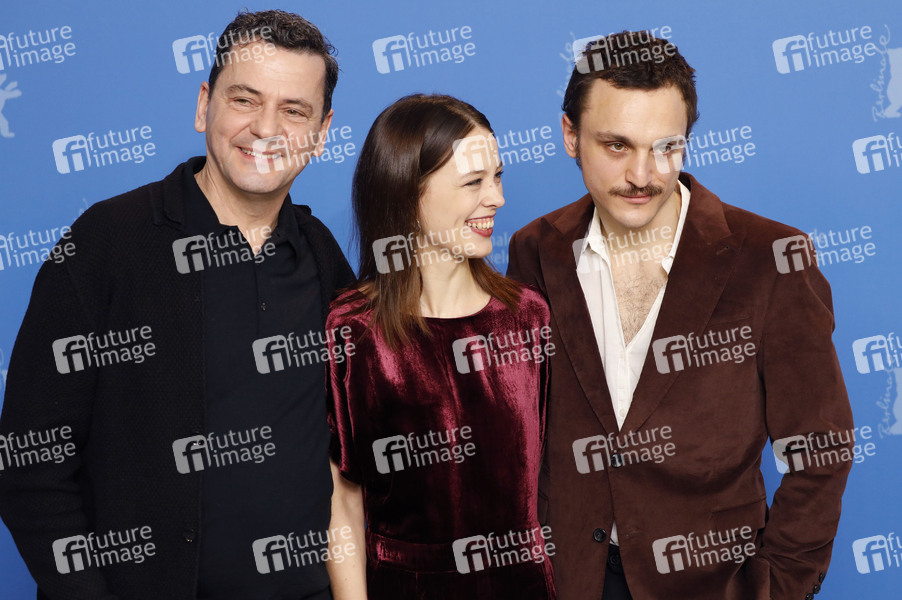 Christian Petzold, Paula Beer und Franz Rogowski beim Photocall zu 'Undine' auf der Berlinale 2020 / 70. Internationale Filmfestspiele Berlin im Hotel Grand Hyatt. Berlin, 23.02.2020