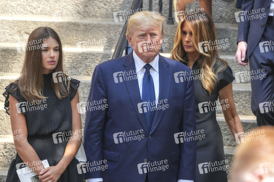 Donald Trump mit Ehfrau Melania Trump bei der Trauerfeier für Ivana Trump in der römisch-katholischen Kirche St. Vincent. Ivana Trump, die erste Frau des ehemaligen Präsidenten Donald Trump, starb im Alter von 73 Jahren nach einem Sturz auf der Treppe ihres Hauses in Manhattan. New York, 20.07.2022