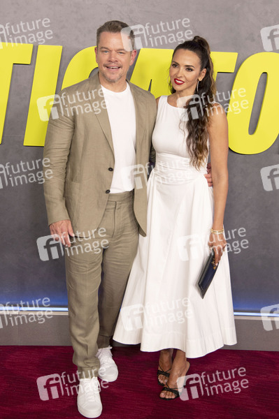 Matt Damon mit Ehefrau Luciana Barroso bei der Premiere des Apple TV+ Films 'The Instigators' im Jazz at Lincoln Center. New York, 31.07.2024