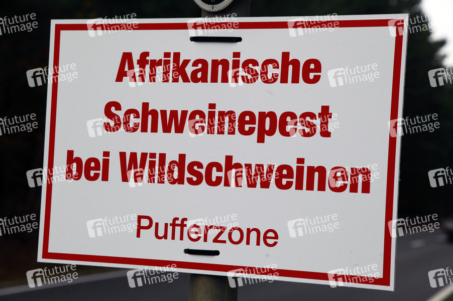 Medizin, Gesundheit, Tierseuche, ASP, Gesundheit, Tiere, Wildschweine, MED, Schweinepest, Afrikanische Schweinepest, Schriftzug, Seuche, Schild, Wildschweinepest, Schweinepestverordnung, Hinweisschild, Warnung, Grenzgebiet, Symbolfoto, Symbolbild