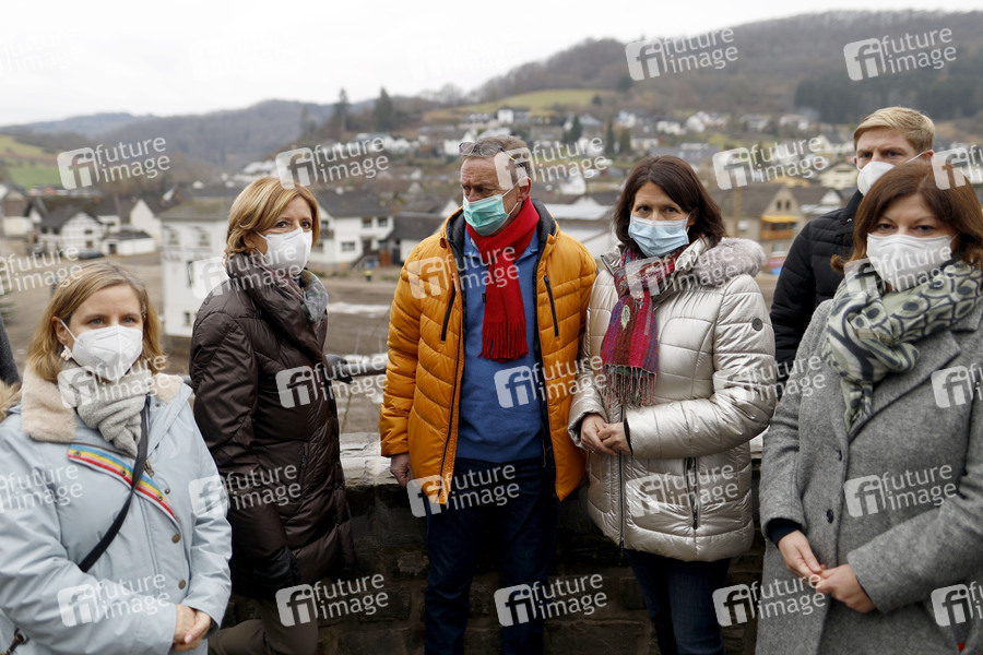 Daniela Schmitt, Malu Dreyer und Katrin Eder besuchen sechs Monate nach der Jahrhundertflut das Ahrtal, um Bestandsaufnahme in der Ortsgemeinde Schuld zu machen. Schuld, 12.01.2022
