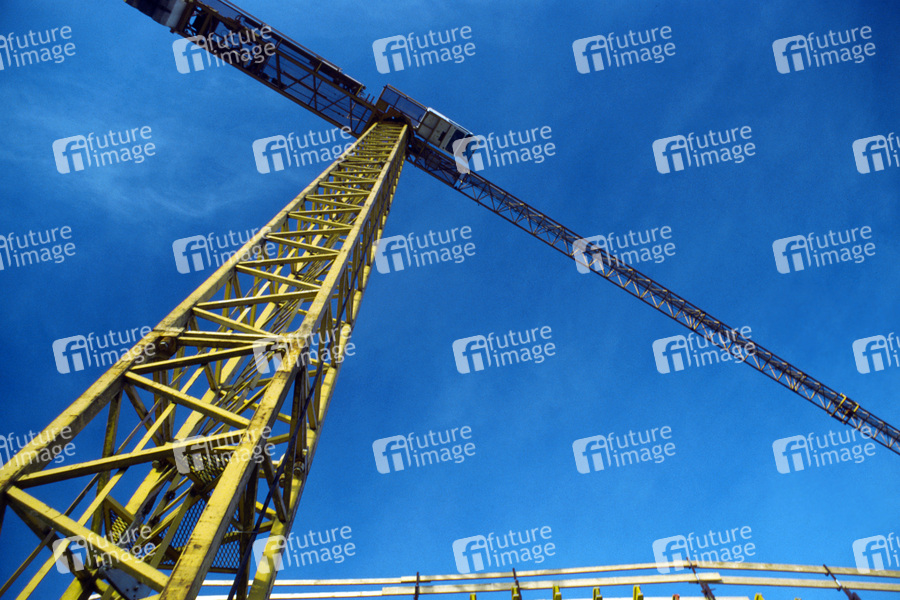Kran, Krane, Baustelle, Bau, bauen, Hochbau, Tiefbau, Transport, transportieren, heben, Aubau, aufbauen, Konjunktur, Lohn, Lohndumping, Arbeit, Arbeiter, Arbeitsschutz, Arbeitsunfall, Arbeitsunfaelle, Gefahr, gefaehrlich, Architektur, Geruest, ausruesten, Maschine, Maschinen, Aussicht, Uebersicht, Froschperspektive, Perspektive