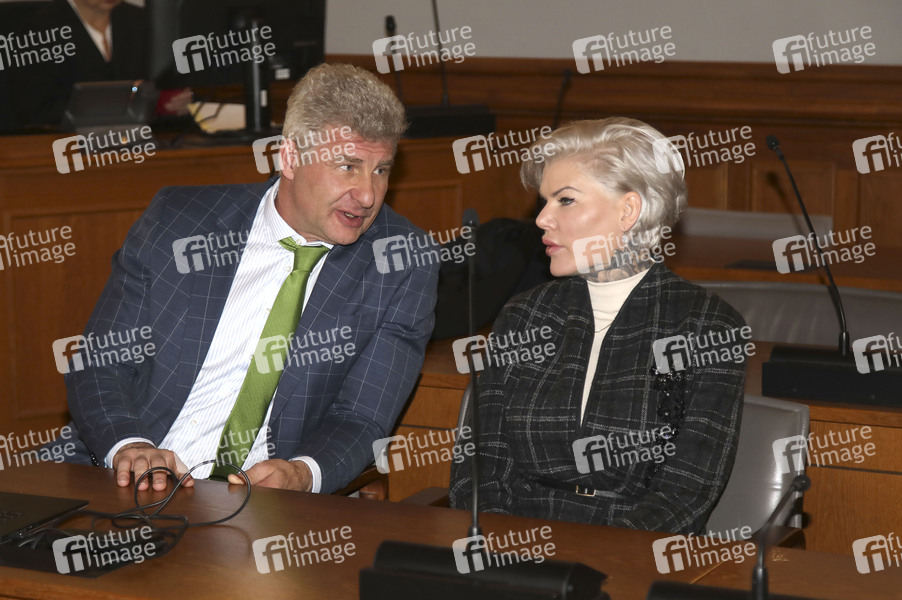 Melanie Müller mit ihrem Anwalt Adrian Stahl beim Berufungsprozess wegen Verwendens von Kennzeichen verfassungswidriger und terroristischer Organisationen im Amtsgericht Leipzig. Leipzig, 18.12.2025