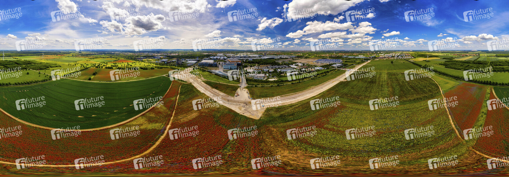 Luftbildaufnahme von Mohnfeldern am Expo Park Hannover. Laatzen, 09.06.2019