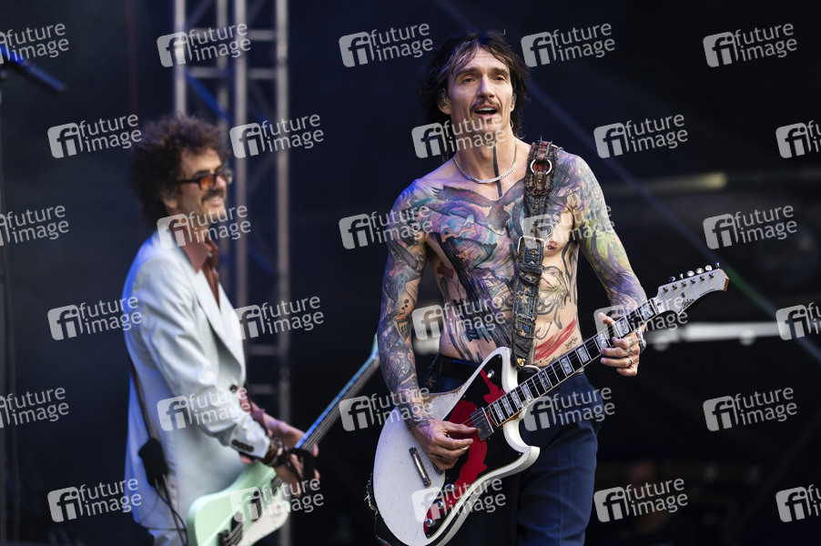 Frankie Poullain und Justin Hawkins von The Darkness live beim 15. Open R Festival in der Almased Arena auf dem Albrecht-Thaer-Gelände. Uelzen, 27.06.2025