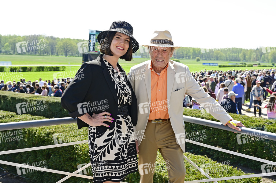 Claus Theo Gärtner mit Ehefrau Sarah Würgler bei der Großen Saisoneröffnung 2025 auf der Rennbahn Hoppegarten. Berlin, 20.04.2025