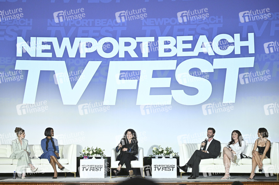 Taylor Dearden, Skye P. Marshall, Moderatorin, Patrick Schwarzenegger, Megan Stalter und Chase Sui Wonders bei der Verleihung der Breakout Awards auf dem Newport Beach TV Fest im Lido Theater. Newport Beach, 07.06.2025