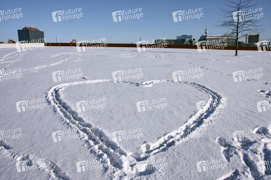 Herz im Schnee im Berliner Spreebogenpark. Berlin, 05.01.2009
