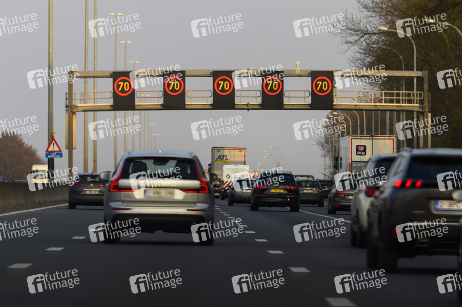 Geschwindigkeitszeichen Zulässige Höchstgeschwindigkeit 70 km/h auf einer Autobahn in Belgien. (Themenbild, Symbolbild) Heverlee, 03.04.2022