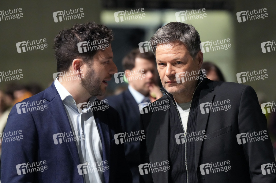 Felix Banaszak und Robert Habeck bei der außerordentlichen Bundesdelegiertenkonferenz von Bündnis 90/Die Grünen im City Cube. Berlin, 26.01.2025