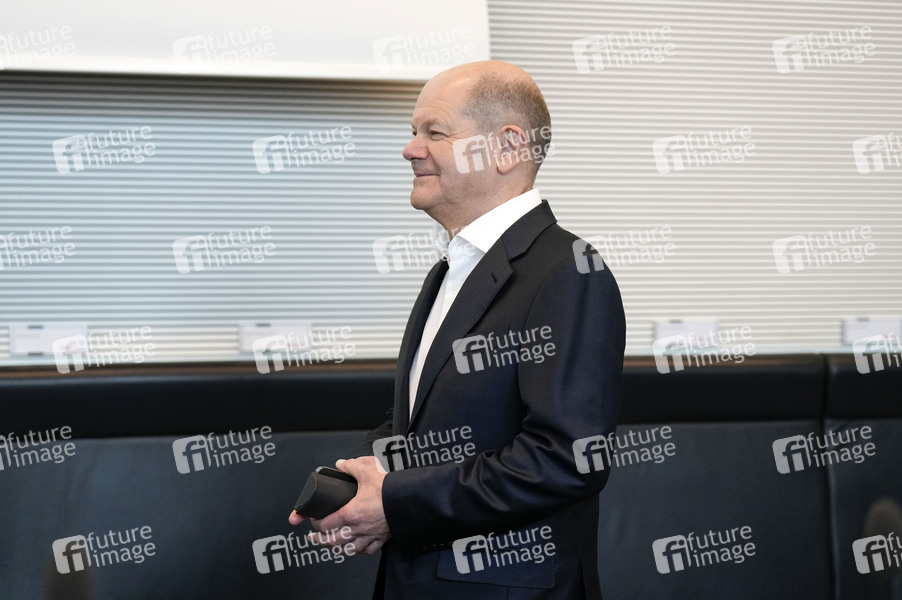 Olaf Scholz bei der Fraktionssitzung der SPD-Bundestagsfraktion im Reichstagsgebäude. Berlin, 23.04.2024
