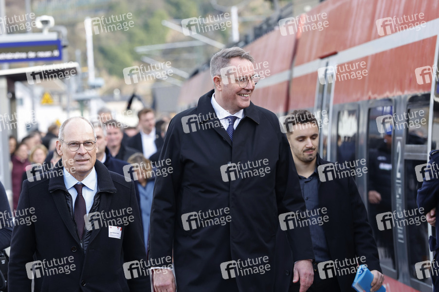 Alexander Schweitzer bei der Inbetriebnahme der neuen Ahrtalbahn mit Sonderfahrt von Dernau nach Altenahr. Dernau, 12.12.2025