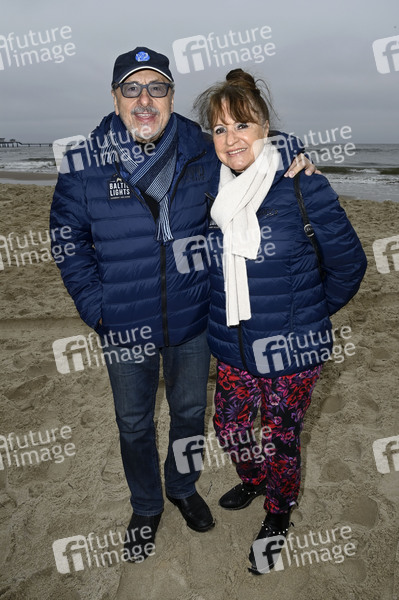 Wolfgang Stumph mit Ehefrau Christine Stumph beim 9. Baltic Lights 2025 Charity-Schlittenhunderennen zu Gunsten der Welthungerhilfe zwischen der Seebrücke Ahlbeck und der Seebrücke Heringsdorf. Heringsdorf, 01.03.2025