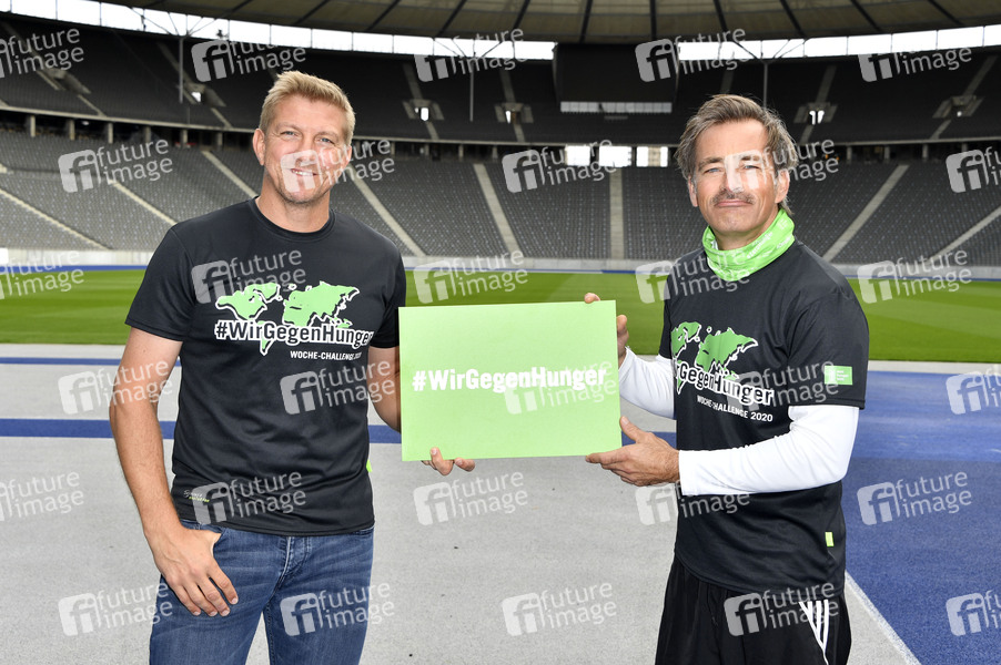 Marko Rehmer und Jan Sosniok beim Fototermin zur sportichen '#WocheChallenge' im Olympiastation Berlin. Unter dem Motto 'Wir können was bewegen!' ruft die Welthungerhilfe zu dieser Challenge auf und bittet um Spenden für eine Welt ohne Hunger. Berlin, 09.10.2020