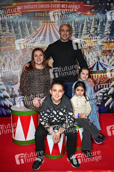 Arthur Abraham mit Ehefrau Mary Abrahamjan und Kindern bei der Premiere des 27. Dresdner Weihnachts-Circus an der Washingtonstraße. Dresden, 13.12.2024